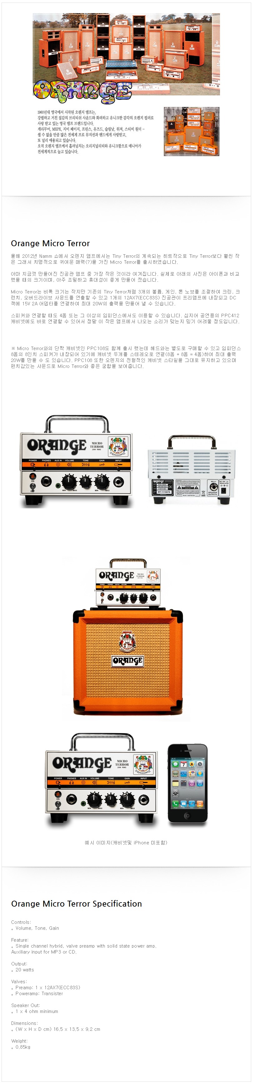 오렌지 미니 일렉기타 앰프 헤드 MICRO TERROR