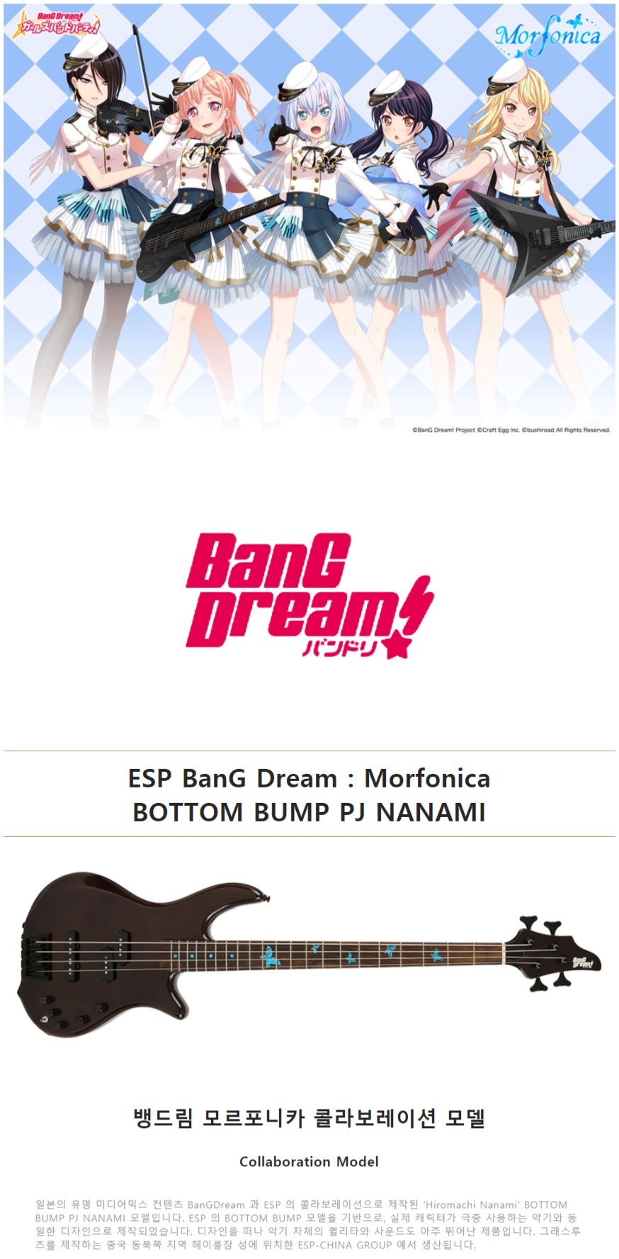 ESP E-II 베이스기타 BanG Dream Morfonica BOTTOM BUMP PJ NANAMI