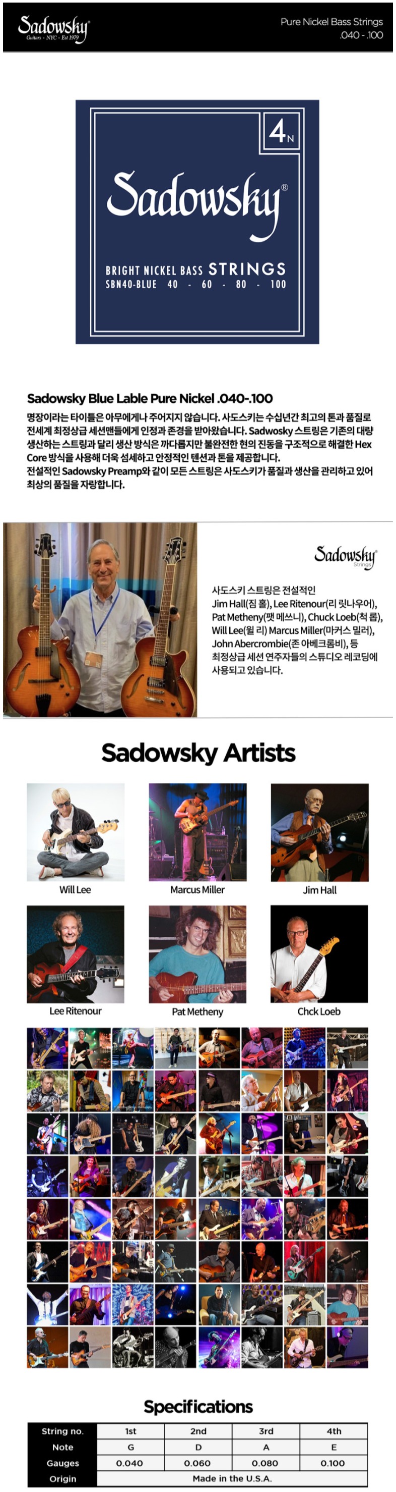 새도우스키 베이스기타줄 블루라벨 니켈 40-100 SBN40