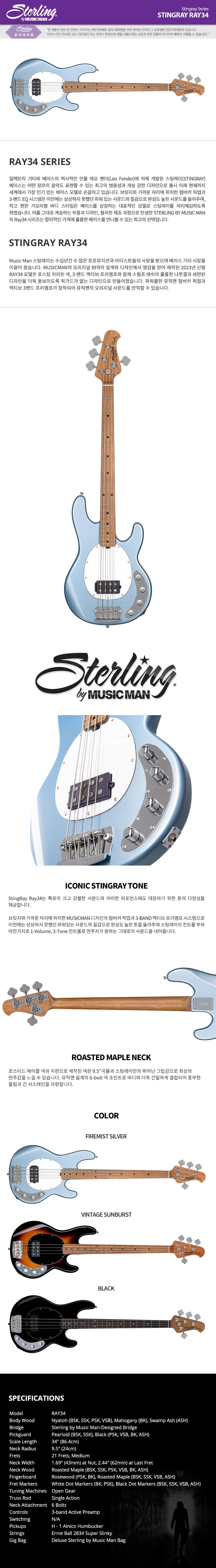 스털링 베이스기타 RAY34FM BLACK