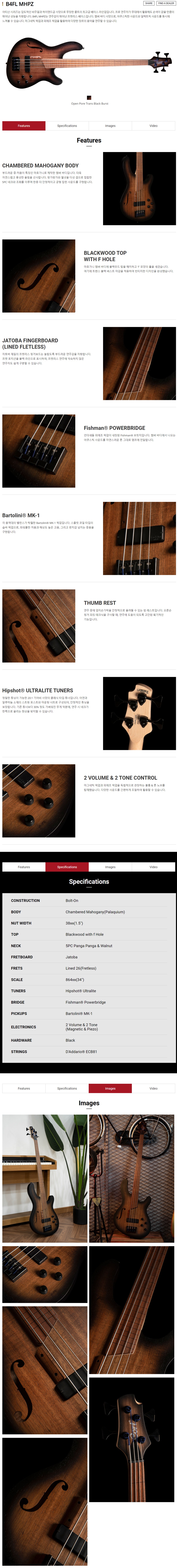 콜트 베이스기타 B4FL MHPZ 프렛리스